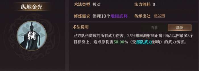 来自赵公明,后期不玩财神骑的话,可以传道一个。适合高频输出的武力阵容带,提升全队输出能力。