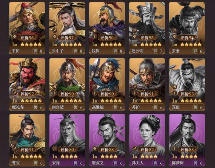 韦护庚金骑核心,抽到的话优先传道,其次升阶。钱保、张奎、郑伦、南宫适在各自体系中都是合格的工具人,苏护是群体增伤辅,可根据自己阵容决定是否要留。魔礼寿、高继能目前用处不大,可以直接传道。