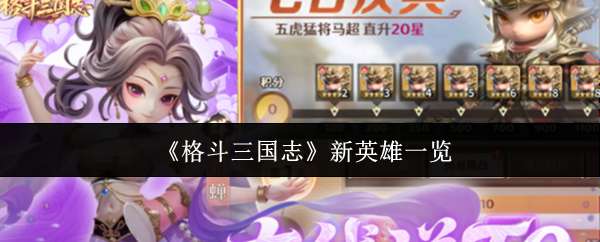 格斗三国志新英雄有哪些?很多人对于三国题材类型的游戏都备受瞩目,而近期关注度特别高的,那就是格斗三国志。这是一款题材新颖的三国类手游。人们在了解这款游戏时,也会将所有的焦点放在格斗三国志新英雄。近期在很多资料中或者是很多全新推出的活动中,就能够将很多高价值的武将呈现出来,这些武将的表现或者是战斗实力都特别卓越,也是新手玩家以及进阶玩家的首选。