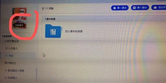 11、如果教学老师想备别的课,点击左上角切换课本就可以了,