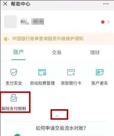 4、进入帮助中心,点击箭头,选择“解除支付限制”。