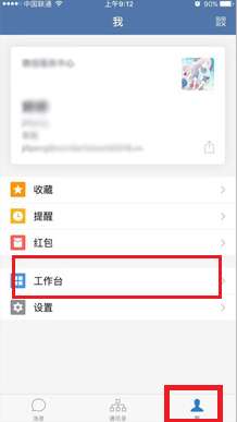 2、在最下方的三个选项中,选择最右侧的【我】功能,进入后可以看到一个【工作台】的功能,点击进入。