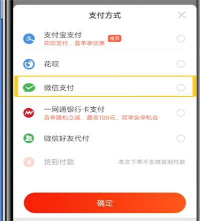 3.点击支付方式,选择微信支付即可