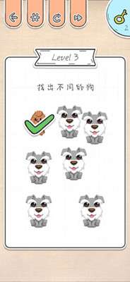 在最强大脑急转弯中,第3关的题目是“找出与众不同的狗”,都是很简单的题目,只要不中圈套就好了,下面小编就来为大家介绍一下最强大脑急转弯第3关怎么过吧,一起来看看。