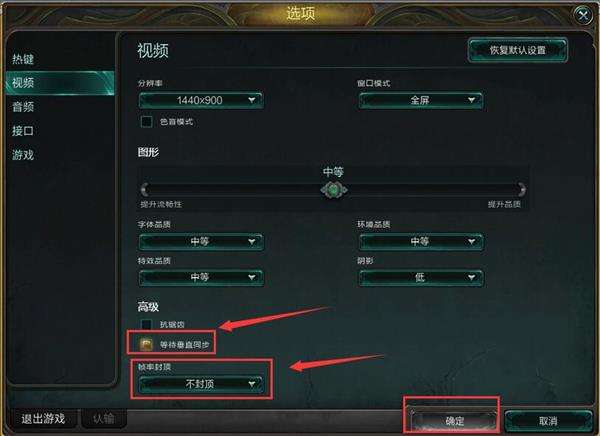 2、选择点击“视频”,然后将帧率封顶设置为“不封顶”,再取消勾选“等待垂直同步”,如图所示: