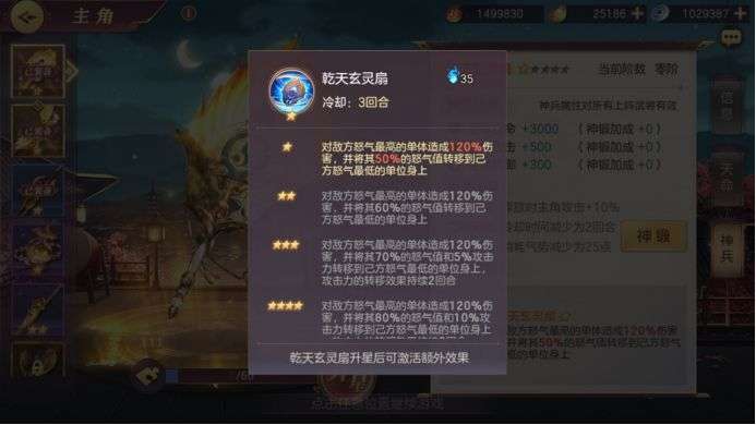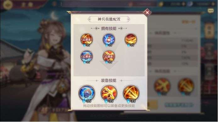 主角可以通过装备神兵获得神兵技能在战斗中手动进行释放从而改变战局,主角一共有3个神兵技能位可以进行配置。