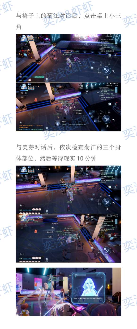 与椅子上的女主对话后 触摸桌子上三个三角形调查线索 再依次检查女主三个身体部位 等待现实时间十分钟