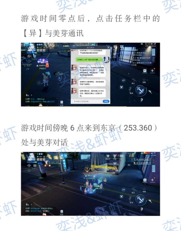 游戏时间到达第二天零点 新的一天开始啦这时候点击任务栏旁边的异闻触发通话记录 这时候就提示你叫你七点去【浅草寺】前面等这个女主 当游戏时间到达【傍晚六点】时便可以在【东京(253.360)】与女主助理对话了