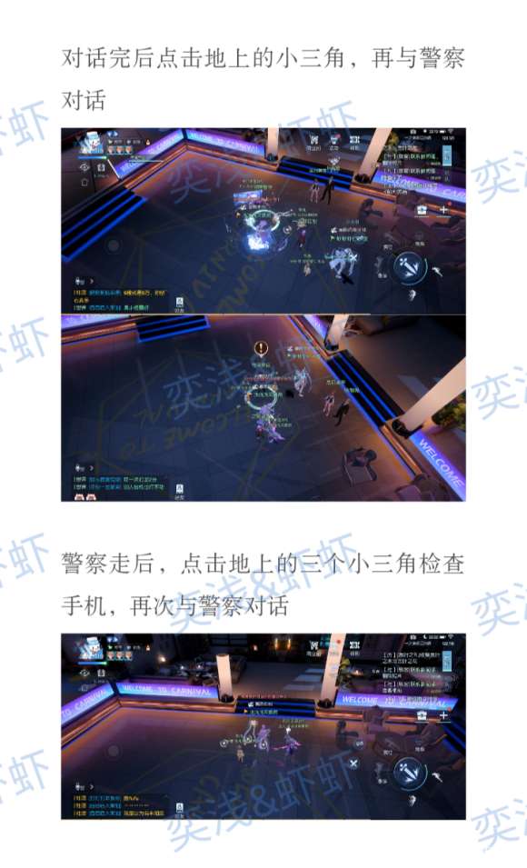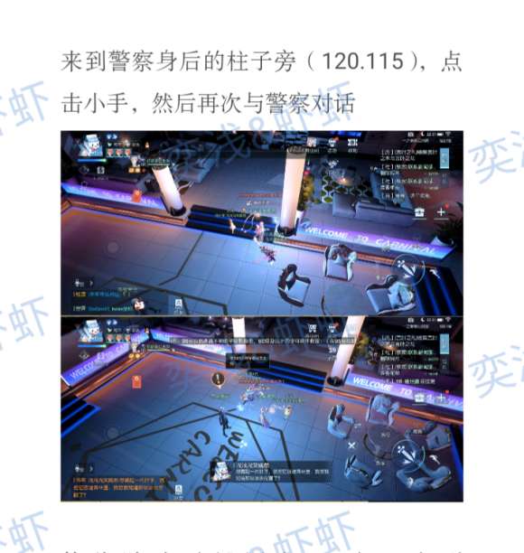 寻找助理藏毒药的地方 在柱子旁(120.115) 会显示小手 摸完与警察对话