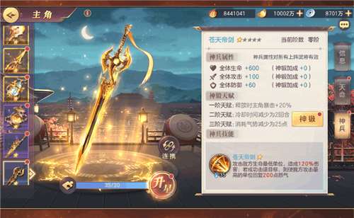总结:镇世灵灯在紫色神兵里效果较强,能与神兵苍天帝剑产生连携效果十分容易达成,前期如果没有升星则配置神兵的顺序放在第一、第二个就行,如果升星的话则更适合收拾残局放在神兵上场的技能的最后一格。但比起橙色神兵差距很大,大家酌情使用。