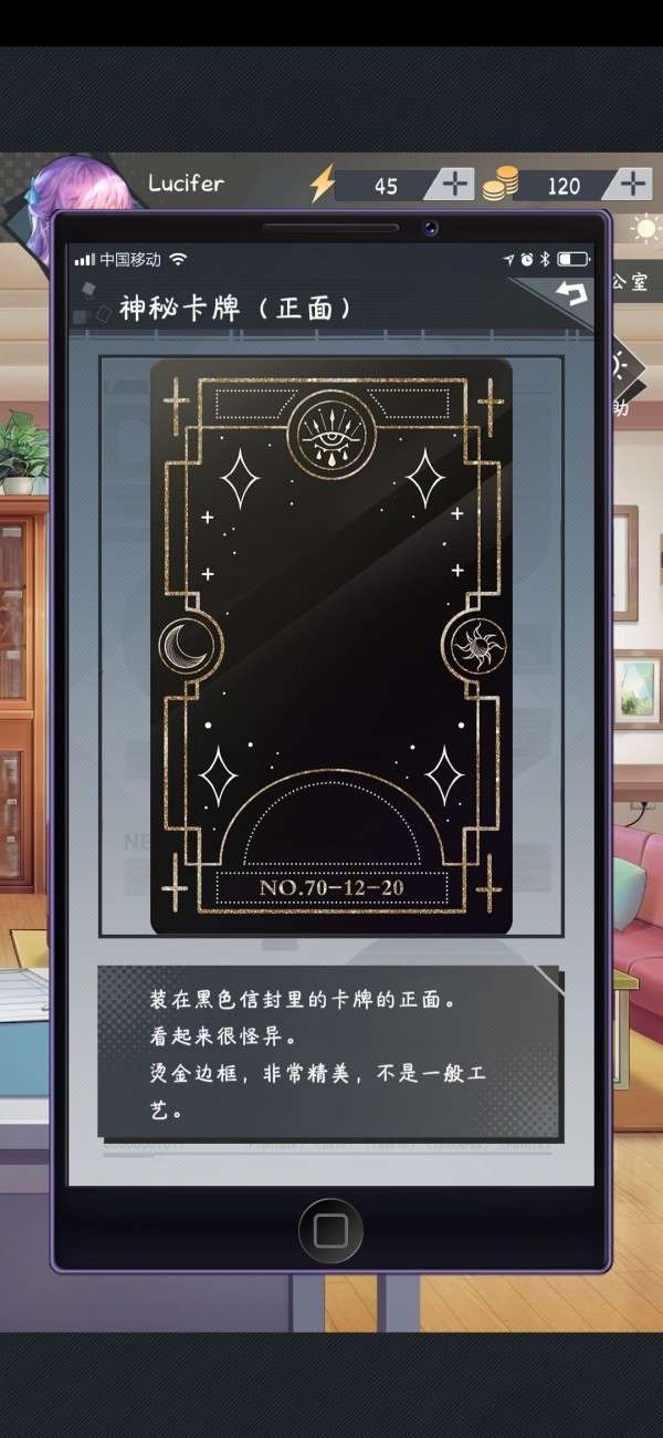接受任务后,再次打开信封查看。获得卡片,剧情需要从卡片上取证。分别调查正面的数字,卡牌的边框,以及正反两面。(在档案里选取任务,再点击证据即可)