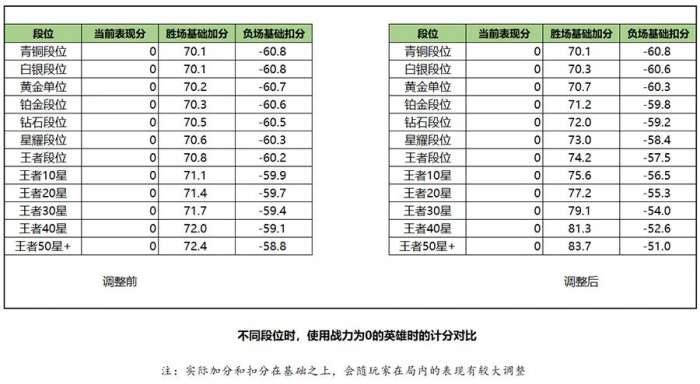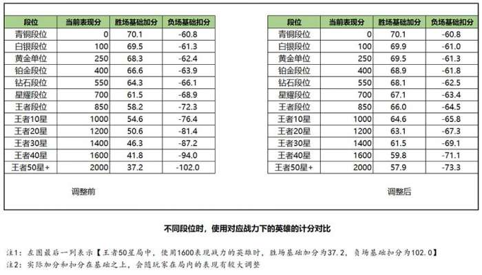2、刷新了高分段位对应的荣耀战力所需的“胜场加分”、“负场扣分”。