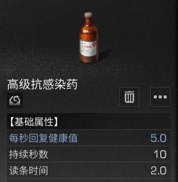 高级抗感染药使用后可快速回复健康值,并在10分钟内对感染者的伤害加成15%。