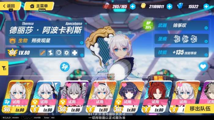 关卡内的伤害动辄几万、十万甚至百万,基本可以忽视属性克制,因此一个c位基本够用,另选两个辅助即可。(当然搭配五花八门,期待正式服上线后舰长们各显神通)