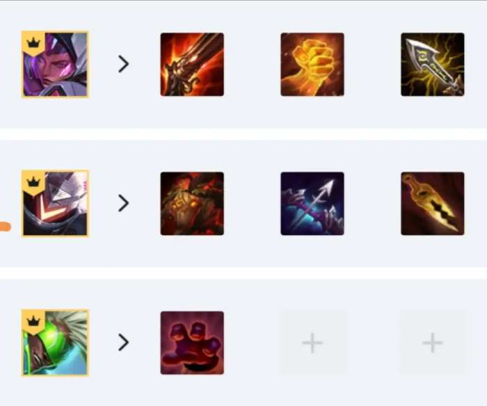 开局装备锁子甲和腰带,优先给卢锡安做出红BUFF和缴械这两件装备,只要有红BUFF的卢锡安,前期的伤害就非常舒服,能够打好连胜。