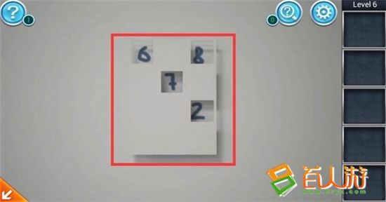 6、拉起右边的百叶窗,将卡片放在数字上,得到过关大门密码6872。