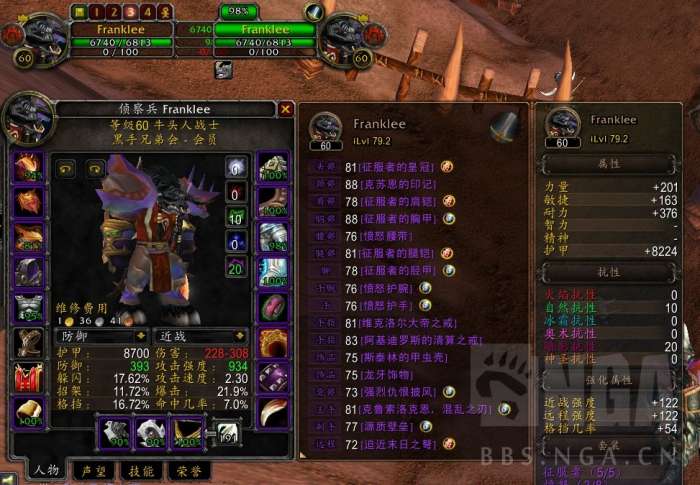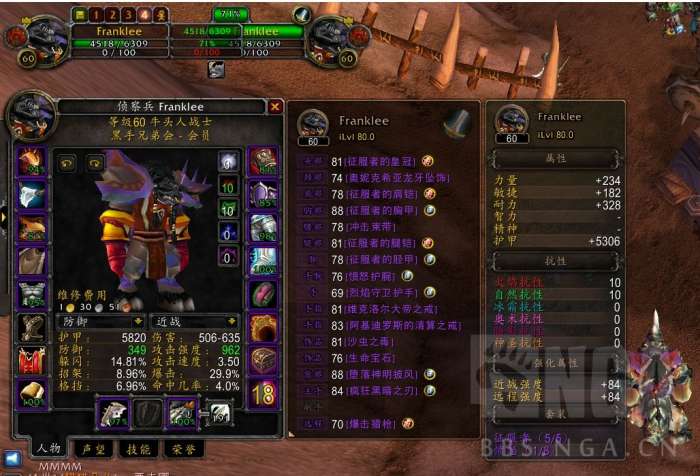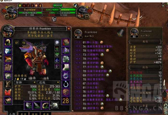 虫群卫士徽章,当之无愧小怪第一神器,野团第二神器(第一是减仇恨雕像..)。最后借伟大nga许愿右脸,毁灭手,帝王武器x2(4个cd居然一个没出!)放上楼主装备图,也希望所有朋友都能收获自己喜欢的装备和愉快的游戏体验!T装(主玩t的,目前天赋是武器战,所以三围略少,戒指8t2什么的都有,战斗不同合理调整属性就好了)。