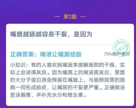 | 1月17日:嘴唇越舔越容易干裂是因为? | 今日答案:把油脂舔走了 | ||||