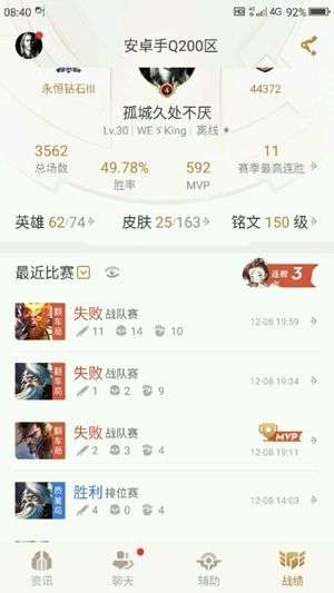 继续往高端局打的话,英雄池就必须要扩大了,如果你的英雄池不够深的话,常常会出现与队友撞位置的情况,一旦出现双方皆不退让的情况,若是心态一崩结局就锁死了。高端局中你不仅需要会一些强势的英雄,还有适当的熟悉一些比较百搭、可打配合的英雄,这些英雄往往能抗能杀,在团队中可以起到重要作用。