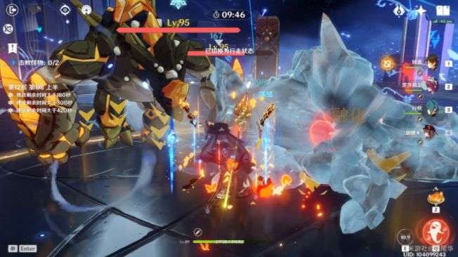 行秋配合罗莎莉亚/迪奥娜冰冻怪物。