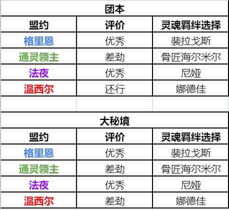 如上图所示,盟约的选择的话可以根据不同的环境,这里推荐团本使用格里恩盟约,大秘境的情况下使用法夜盟约,而且现在转盟约的惩罚已经消失了,所以还是很方便的。