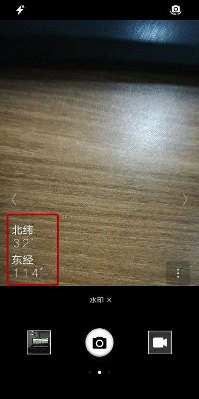6、再拍照即可看到经纬水印,水印位置可以滑动放置任意屏幕地方。