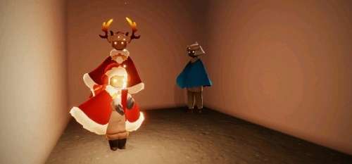 需要玩家有TGC斗篷才能进入,不过也可以直接卡进去,然后玩家可以在小蓝的旁边,然后看到这个有鹿角的先祖。