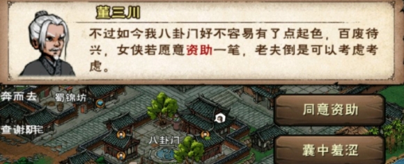 1、重振八卦门60级以上,然后到成都的(22.15)八卦门找NPC董三川打听伏羲刀法。