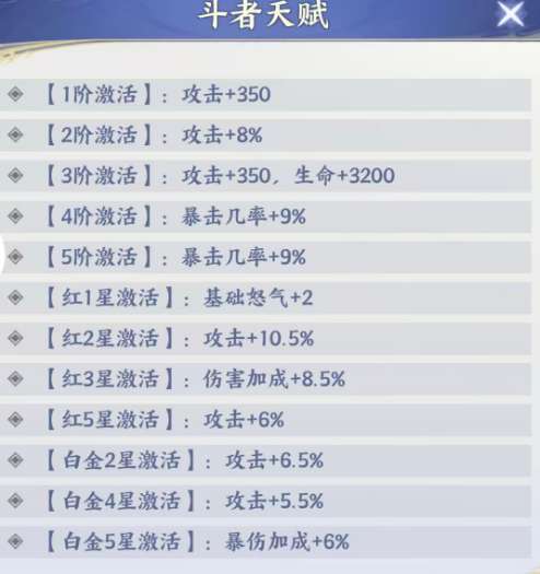 而在天赋能力上面她基本都是带来的基础属性提升效果,比如在3阶的时候激活的是攻击+350,生命+3200,相比前面两阶的基础攻击加成而言,后面几个阶级带来的提升更有针对性,而且在其中也会有更多的数值,比如在5阶的时候血河天尊的暴击数值上面触发的几率就会增加9%,而在红2星阶段她能够带来的攻击在百分比上面也直接达到了10.5%,所以在有天赋加成的时候她自身输出提升还是非常明显的,最后再上阵的时候大家也是需要注意的,这个角色如果要上场的话最好是跟鹜护法一起上,他们俩放在一起的话是有一个斗者羁绊叫做血鹜锁魂的能力可以触发。