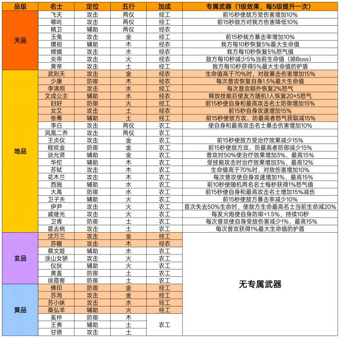 专属武器只有天地品名士有,而且要升星到五星才能解锁。