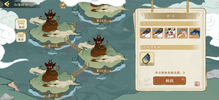 升级专属武器的材料通过打山海秘境获取,山海秘境类似爬塔,每天最多打30层。