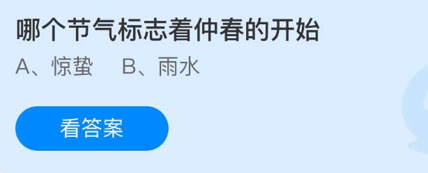 哪个节气标志着仲春的开始?支付宝小鸡课堂开课啦!每天花一分钟答题赚饲料,喂喂小鸡就能贡献爱心啦!轻松又意义十足!2026年3月5日蚂蚁庄园的小鸡课堂题目正确答案是【惊蛰】,惊蛰节气标志着仲春的开始。