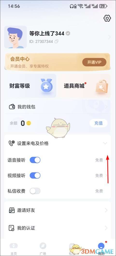 3、打开知聊app,点击右下角“我的”,再点击收费设定,就可对陌生人和好友进行收费。(需开通会员,并达到VIP4)