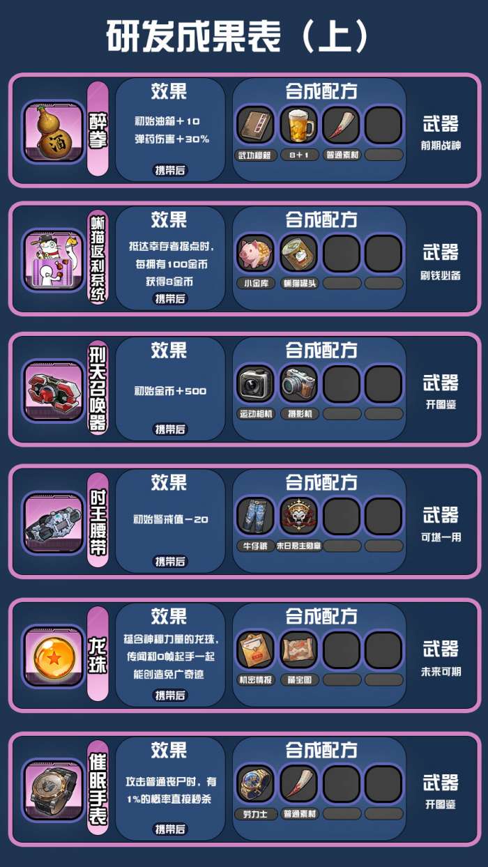 我在末日送快递游戏里,我们可以通过各种物品的合成来研发出我们需要的武器、装备、道具等配方,这些配方可以帮助玩家存活的更久,下面是《我在末日送快递》研发配方攻略分析,大家可以参考一下!