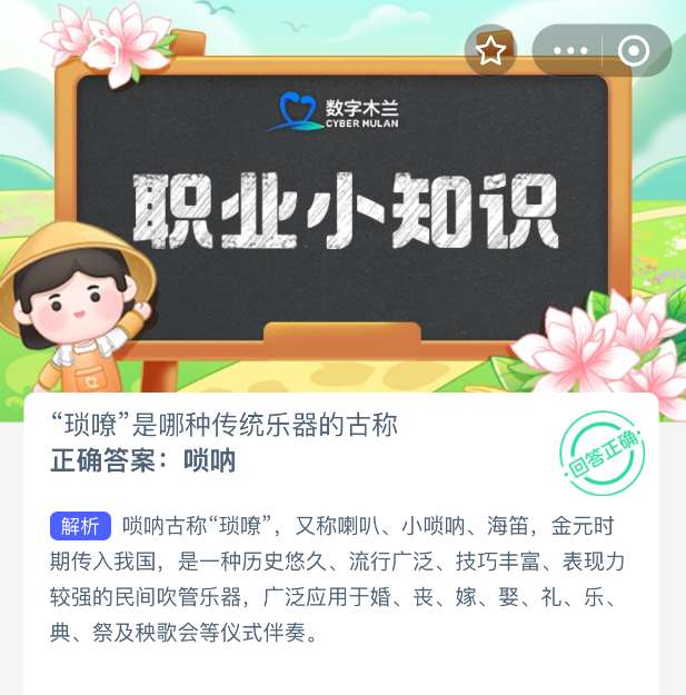 以上就是“琐嘹”是哪种传统乐器的古称?支付宝蚂蚁新村最新答案2025年11月16日,更多精彩内容,请点击关注pk游戏网更新!