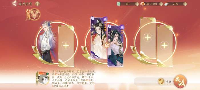 卦象选“离”,组合选白虎或者旁边的那个朱雀,主要是需要输出和辅助各一个,然后上班昭和吕雉,练度比较低可以上一个黄卡或玄卡防御,朱雀选控制的话,可以上干将,之后考虑换更适配的