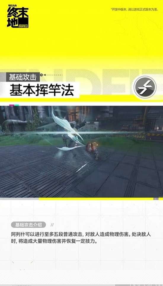 阿列什可以进行至多五段普通攻击,对敌人造成物理伤害。处决敌人时,将造成大量物理伤害并恢复一定技力。