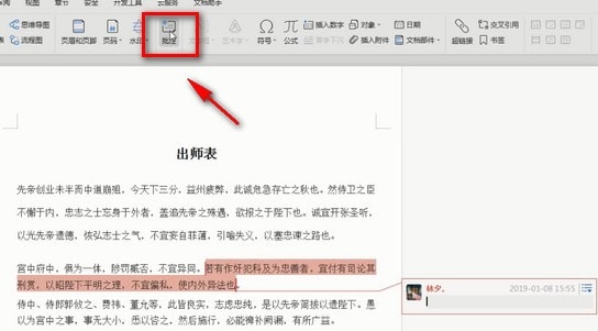 在功能表中找到【批注】,然后就能在新增的批注中填写批注内容了。
