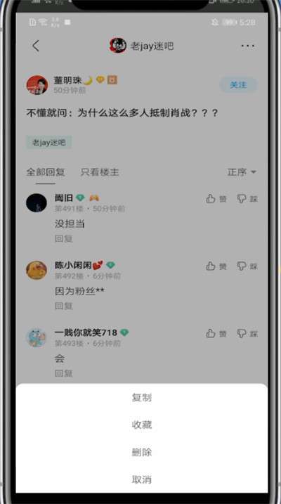 贴吧中删除自己的评论的方法