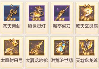 神兵优先推荐和氏璧、乾天玄灵扇和天墟盘龙斧。和氏璧3星再上比较好,如果没有和氏璧可以将和氏璧换成葫芦,也是3星的比较好,能解减益状态。