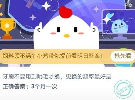 今天的问题是:牙刷不要用到呲毛才换,更换的频率最好是?