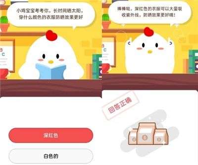 今天的问题是:小鸡宝宝考考你,长时间晒太阳,穿什么颜色的衣服防晒效果更好?