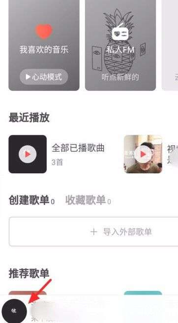 2、登录进入后,在网易云音乐页面,点击播放页面;
