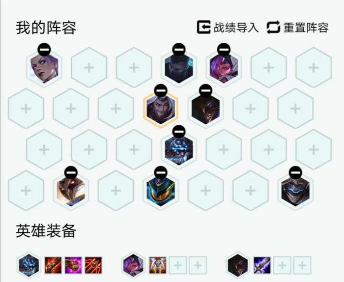 7人口核心阵容是6剑+3奥德赛,这里建议大家用劫来打工。7人口追3星英雄的顺序:剑圣>亚索=慎>劫>锐雯>刀妹。
