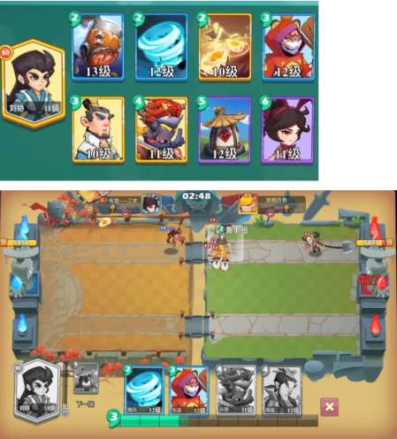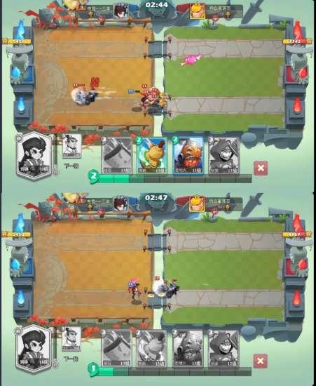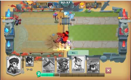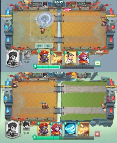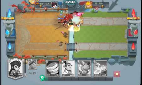 案例一、在实战中,如果起手卡牌有大乔,那就等费满后我方半场靠近桥头放出。接下来只需要见招拆招。