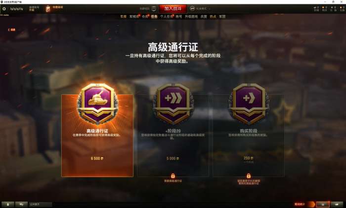您只能租用足以完成主线进度的坦克数量。租用坦克将一直留在您的车库中,直到租用期满。完成前10个阶段后,您无法延长它们的租期。届时,车库内的战斗通行证界面中将出现“购买高级通行证”按钮。