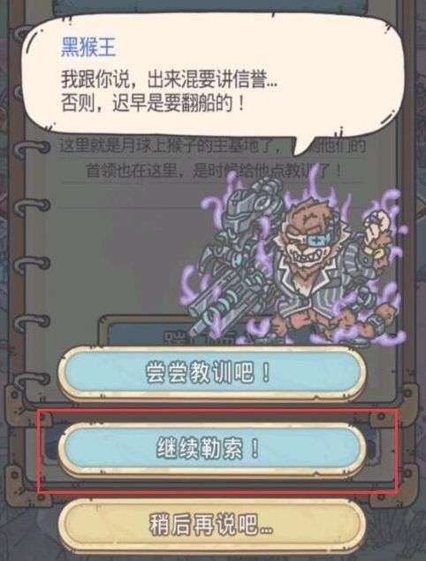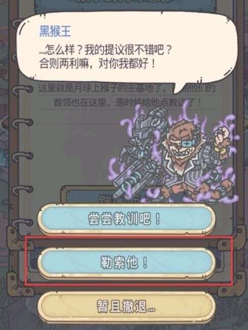 最强蜗牛黑猴王勒索他还是尝尝教训面对这个难题,很多玩家都会选择会一会他,但是又会发现怎么就打不过呢,其实一定要掌握好技巧才行,现在就来告诉给大家具体剧情选项吧。