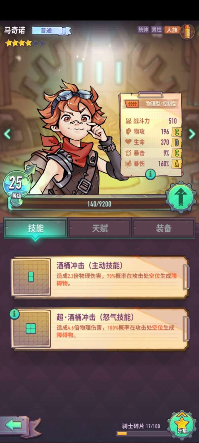 ④马诺棋,最好用工具人!怪物BOSS是分近战(冲锋也是)和射手的,碰到近战BOSS上他就对了,星级升高后放桶的概率升高,boss一下都打不到你(必要的时候可以开怒气100%放桶)