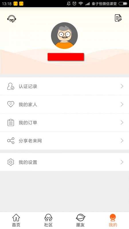4-1) 在老来网app里,选择‘我的家人’