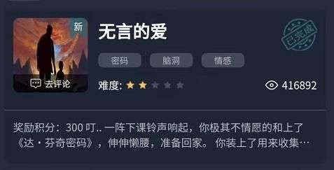 犯罪大师无言的爱答案是什么?《无言的爱》是crimaster犯罪大师在12月20日谜之解密板块发布的难度为2星的谜题,这一章内有3个关卡,全部答对可获得300积分,想知道答案的玩家,以下是小编为大家带来的犯罪大师无言的爱答案,一起来看看吧。